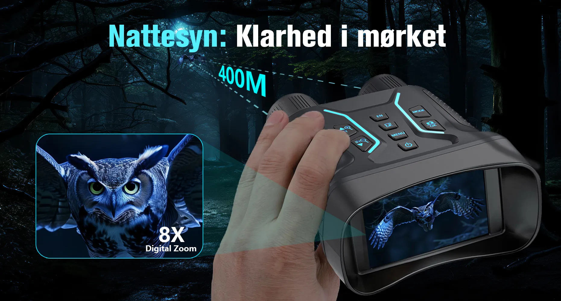 Denne natkikkert har 8x digital zoom, hvilket gør, at du kan fange fjerne objekter skarpt. Uanset om det er til observation eller observation af vilde dyr, giver zoomfunktionen bedre sigt og forstørrelse.